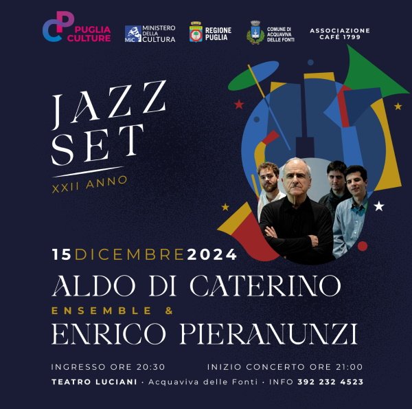 La rassegna 𝐉𝐚𝐳𝐳𝐬𝐞𝐭, a cura dell’Associazione Cafè 1799, grazie al sostegno della Regione Puglia, di Puglia Culture – Circuito Teatrale in accordo con il comune di Acquaviva delle Fonti, per il 22°anno presenta due appuntamenti esclusivi nel Teatro Comunale Luciani di Acquaviva delle Fonti: