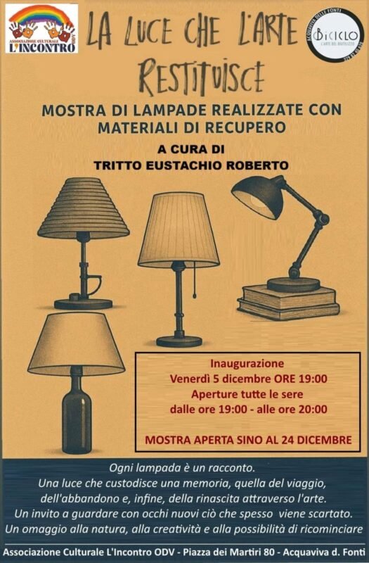 Personale creativa di Tritto Eustachio Roberto Location: ‘associazione L’INCONTRO ODV- Piazza dei Martiri 80